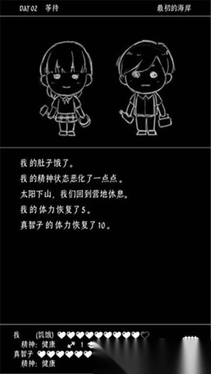 《终结的世界与你和我》是一款最初在电脑平台发行的文字末日求生冒险游戏,目前已移植到手机安卓端。在游戏中,玩家将扮演一名小男孩,由于学校组织的旅游遭遇意外,最后只有自己和另一位女孩在孤岛上苏醒。每天的不同时段,玩家都需要做出抉择,比如是去探索周边、建造营地,还是前往其他区域,而这些选择都将决定两人最终的命运走向。