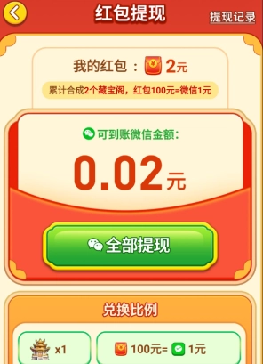 7、合成出的藏宝阁还能直接兑换提现奖励。