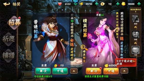 精英招募积分也可直接领取SS武将一枚