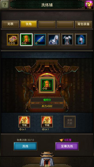 大家都知道,角色的等级越高就越难成长与提升,在提升战力方面,武将与绿装的关系密不可分。《正统三国》游戏内,每天均为主公们提供12次的免费洗炼次数,万万不可浪费。