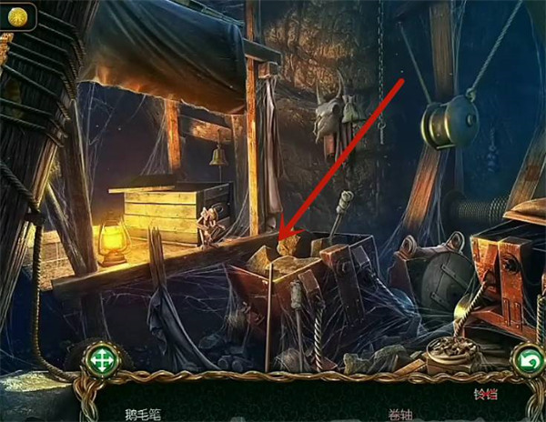 1要解开谜题,玩家得先找到鹅毛笔。具体操作是点击左边的抽屉,然后拿走里面的书籍,这样就能找到鹅毛笔了。