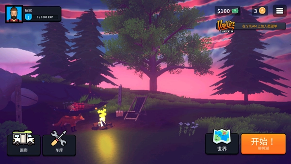 1、启动房车生活模拟器游戏,点击界面右侧的start按钮进入游戏;