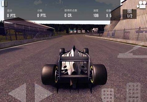 3、游戏的操作不是很复杂,游戏中有5个图标代表行车的不同的项目,左侧是左转和右转的图标,右侧是后退和前进,还有加速的图标,玩家通过点击这5个图标来操控赛车,这样的操作方式是很简单的,很容易上手。
