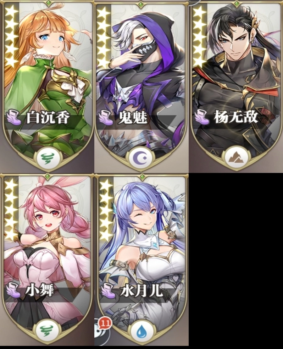 (2)攻击比+物伤/法伤(焱,天青牛虻,朱竹清,舍龙,白鹤)