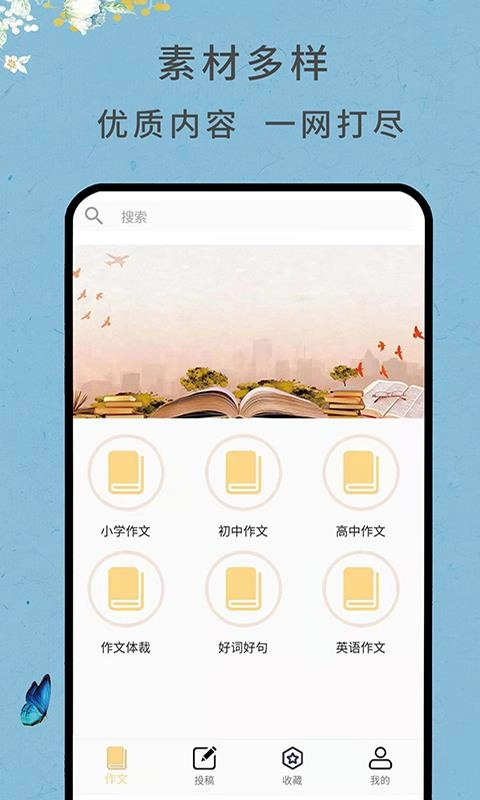 1、软件里收录了海量的作文范本与素材,可供孩子们参考、借鉴,助力他们更深入地理解并掌握写作技巧。
