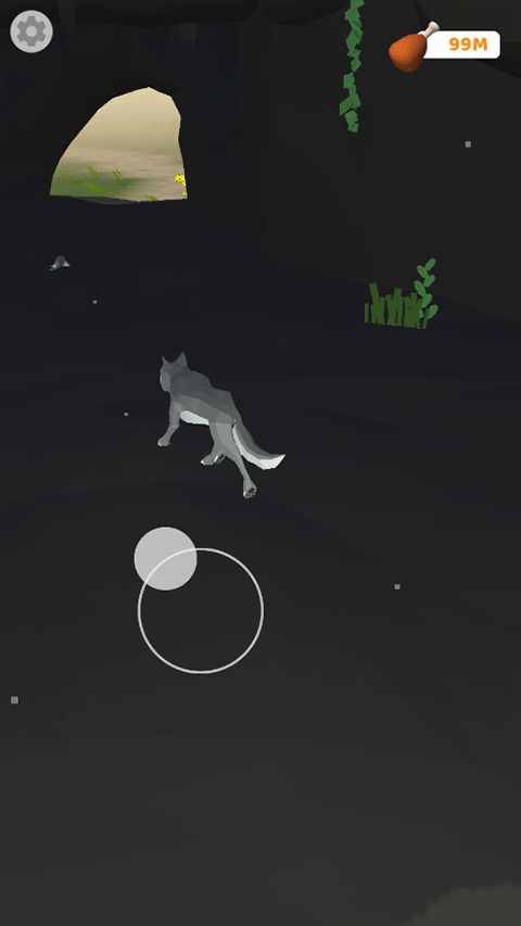 2、当进入游戏,玩家会操控一只狼开启冒险之旅,借助滑动轮盘来控制移动方向。
