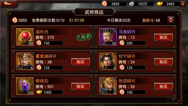 国战商店不推荐的原因是,每天的战功数量实在有限,兑换神将精华和神装精华的效益是高于兑换滋补丹的。