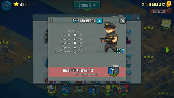 完成挑战之后我们可以使用收集到的物品给各个作战单位升级,可以提高他们的血量、攻击力等属性,当然了,我们的校车也是可以升级的。