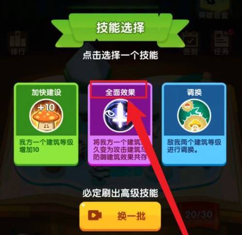1、开启游戏,如图片所示,先选择技能进入【120关】,建议选用【全面效果】技能。