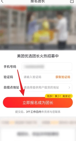 进入【报名团长】页面,即可立即报名成为团长。