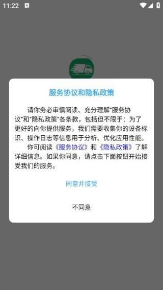 1. 安装软件后打开,进入界面时会弹出服务协议与隐私政策,点击“同意并接受”。