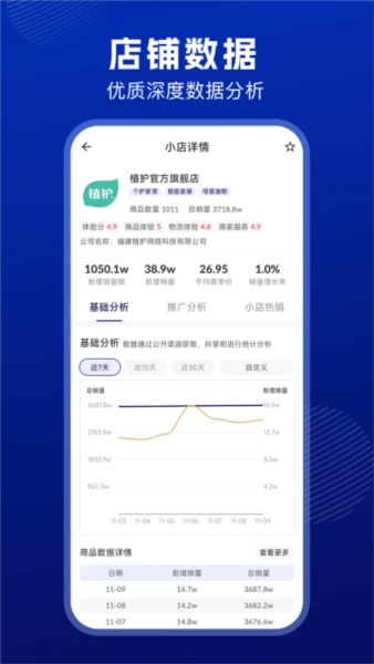 3、热销新品:当日热销新品展示,快速挖掘潜在走量新品。