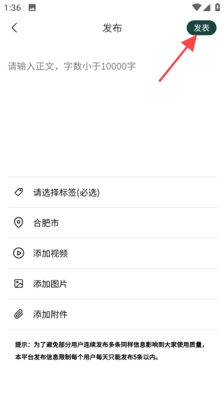 4、按提示输入内容,选择标签、地址等,点击【发表】即可。