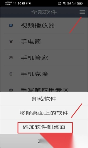 3)选中软件后,点击“添加到桌面”选项即可。
