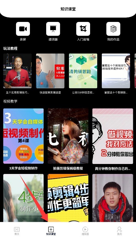 2、进入知识课堂学习专区,可系统掌握各类视频处理技巧与创意玩法操作指南。
