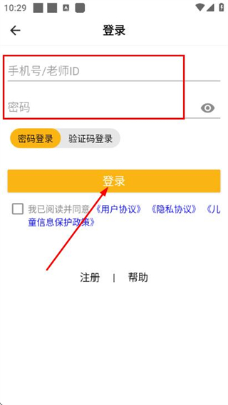 3、在登录页面填写手机号和密码对应的内容,勾选相关协议后点击登录完成账号登录操作。