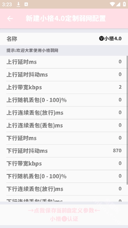 小格4.0弱网是一款实用的弱网测试工具,借助它能够检测应用包的上行掩饰、上行带宽、连续丢包等数据指标;使用过程中,还可将其设置为悬浮窗模式,以便随时调用操作。