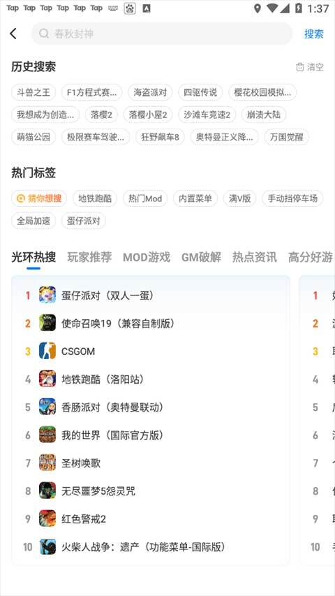 5、我们还可以自行搜索游戏,查看热门排行榜,可以快速找到自己满意的手游。
