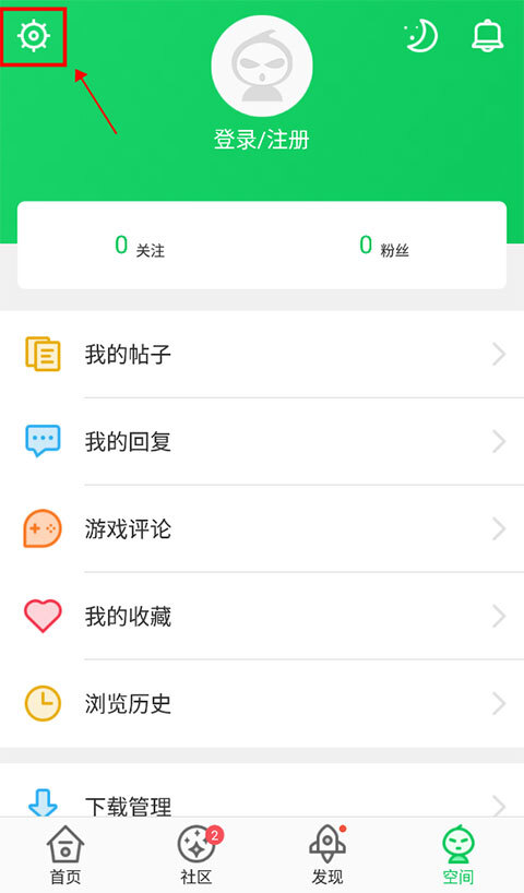1、用户首先进入应用的“空间”页面中点击右上角的设置按钮