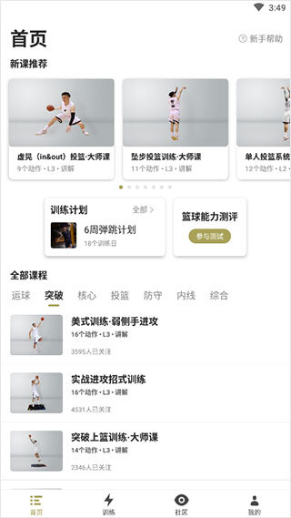 1、第一步,打开开炼app,首页有大量免费的篮球课程可供学习。