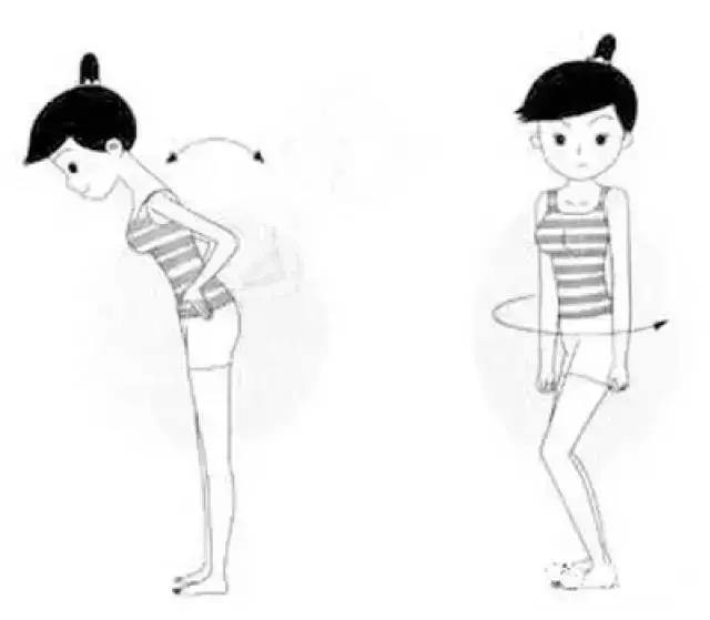 全身直立放松,两腿可微微分开,先两臂上举,身体随之后仰,尽量达到后仰的最大程度。稍停片刻,随即身体前屈,双手下移,让手尽可能触及双脚,再稍停,然后恢复原来体位。可连续做10~15次。
