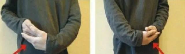 双手相叠,按压在一侧腹股沟,从腹股沟扒到脐,从脐推至膀胱。左右各1-2次。